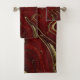 Conjunto De Toalhas Vermelho e Dourado Marble Swirl Moderno
