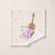 Toalha de banho com uma design feminina macia. Ilustrada com uma imagem de aquarela de um violino de madeira, alguns balés cor-de-rosa descansando contra ele e decorados com flores e borboletas. Colocado sobre um fundo cor-de-rosa cor de pêssego.