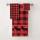 Conjunto De Toalhas Walking Moose Silhouette Red Black Plaid Pattern
