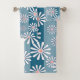 Conjunto De Toalhas White chamomile flowers on striped blue background