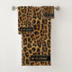 Traga um pouco de luxo para o seu banheiro com este conjunto de toalhas de banho de leopardo chic. A design apresenta um padrão leopardo em tons de ouro acentuado com uma etiqueta elegante de preto e ouro que pode ser personalizada com o nome da sua família ou monograma. Na moda e prático, adicione um lado selvagem glamouroso à sua decoração domiciliar enquanto as rotinas fazeres do dia a dia se sentem um pouco mais indulgentes. Perfeito como presente ou por dar uma atualização de designer ao seu próprio banheiro. Procure ID1160 para ver outros produtos com este design e opções adicionais de impressão animal.