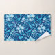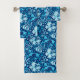 Toalha em uma vintage, William Morris impressão floral de lírios estilizados e irlandeses, digitalmente melhorados e coloridos, em tons de azul-céu e branco sobre um fundo azul-índio escuro