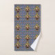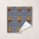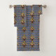 A barba - A obra de arte original de ZoeSPEAK neste Conjunto de Toalhas de Banho é um padrão feito com um retrato do autor William Shakespeare. O retrato está em um quadro de ouro oval de ornamentado com fitas e uma coroa no topo. O papel de parede de fundo azul é decorado com castelos, coroas de reis e flores amarelas e vermelhas, trazendo à mente o romance, a tragédia e a comédia de suas peças e poesia.