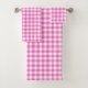 Este conjunto de toalhas de banho bonitinho apresenta um padrão de verificação de xadrez de gingham rosa e branco.