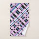 Este conjunto de toalhas apresenta uma reviravolta moderna na xadrez em tons de orquídea, azul ardente e preto e branco.