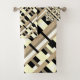 Este conjunto de toalhas apresenta uma reviravolta moderna na xadrez em esticado, bronzeado, preto e branco.