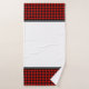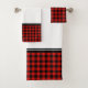 Conjunto de toalhas do banheiro de xadrez de búfalo preto e vermelho.