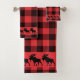 Uma toalha de xadrez de búfalos, que caminhava rusticamente, foi armada com padrão de xadrez vermelho e preto e silhuetas de alce. Perfeito para decoração de casa-de-banho ou decoração de cabana rústica.