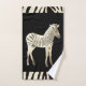 Uma zebra exótica sobre o fundo preto e a borda de impressão zebra para contraste. Vírus africanos exóticos, selvagens.