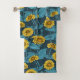 Conjunto De Toalhas Zinnias Amarelas em azul escuro