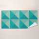 Este conjunto de toalhas tem uma toalha de banho com um design geométrico de triângulos que formam quadrados que se parecem com a vista de um pássaro sobre pirâmides, uma tartaruga de indarca de pano de lavagem e uma toalha de mão em tartaruga mais leve.