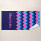 Um conjunto de toalhas monograma com um padrão brilhante e colorido design de chevrons azuis e cor-de-rosa. Crie o presente personalizado perfeito clicando no botão "personalizado" para adicionar um nome ou mensagem personalizada no campo modelo fornecido. Selecione o link "clique para personalizar mais" para alterar a fonte, o tamanho do texto e muito mais.
