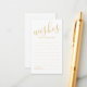 Adicione um toque pessoal ao seu casamento com um moderno guião de casamento e um cartão de desejos. Este cartão de conselho apresenta o título em ouro, estilo de fonte de caligrafia moderna e detalhes no estilo de fonte dourado sans serif em fundo branco. Perfeito para casamento, chá de fraldas, festa de aniversário, chá de panela, festa de solteira e qualquer ocasião especial. Nota: Os detalhes da folha são simulados no trabalho de arte. Este produto não contém detalhes em papel laminado.