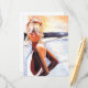 Imagem pintada única por Artista estabelecido da Loura Beach Girl Card. Excelente para qualquer ocasião.