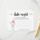 Nossa nova experiência no jarro noturno permite que os chás de panela compartilhem suas ideias noturnas favoritas para o casal feliz. Design apresenta um jarro de pedras cheio de pêssego e florescências cor-de-rosa, e um grampo de folhas botânicas verdes, com "data night" na tipografia de bruxos pretos. As placas podem ser facilmente personalizadas com o nome do casal, o nome da noiva e a data do chá. Coloque uma pilha na entrada do evento, passe-as ou deixe uma em cada lugar. Faz uma bela manutenção para a noiva, e um alternativo excelente para noivas que querem algo um pouco diferente dos jogos habituais!