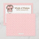 Uma atividade divertida para você incluir no chá de fraldas - colocar essas cartas nas mesas e convidar convidados para dar o conselho que ela certamente apreciará. Faz lindas manobras para ela ficar. Com uma linda menina coruja e um bonito esquema de cores cor rosa e polkadot branco pastel, este cartão é perfeito para coordenar com praticamente qualquer tema de chá de fraldas para uma menina.