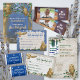 Bar Mitzvah com corujas sábias e trabalho de arte de floresta névoa. Papel de carta azul e bege coordenado completa a aparência. Trabalho de arte único é versátil para qualquer comemoração de aniversário.