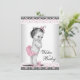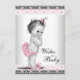Desejos para cartão de chá de bebê de bebê com adorável bebê menina vintage vestindo calças com babados rosa e laço em um lindo fundo de renda cinza rosa e preto. Este cartão de Desejos para o Bebê de chá de bebê cor-de-rosa e preto é facilmente personalizado para o seu evento, adicionando detalhes do evento, estilo de fonte, tamanho e cor da fonte e texto. Basta passá-los para os seus convidados para preencher e guardá-los como lembrança para o bebê.