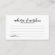 Adicione um toque pessoal ao seu casamento com um conselho de casamento elegante e um cartão de desejos. Este cartão de conselho apresenta o título no estilo de fonte elegante e preto da caligrafia moderna e detalhes no estilo de fonte sans serif preto em fundo branco. Perfeito para casamento, chá de fraldas, festa de aniversário, chá de panela, festa de solteira e qualquer ocasião especial.