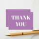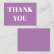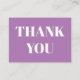 Obrigado lavanda cartão de tipografia moderna branco. Texto de fonte branco serif sobre fundo sólido roxo lavanda.
