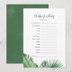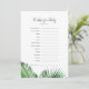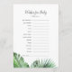 Este chá de fraldas de palma tropical selvagem deseja um cartão de conselho para bebês é perfeito para um chá de fraldas de tema de praia ou um borrifo para bebês. A design apresenta um conjunto exótico de folhas de palmeiras de banana-d'água verde, samambaias, folhagem, plantas botânicas e verde para uma sensação tropical de verão.