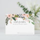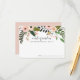 Os cartões de conselho florais elegantes permitem que os convidados chás de panela compartilhem suas palavras de sabedoria favoritas para a noiva ser. As cartas apresentam uma borda superior de flores cor-de-rosa e cor-de-pêssego, enfeitadas com um verde botânico exuberante. "Palavras de sabedoria para o futuro Sra. [Name]" aparece no moderno script de caligrafia manuscrita.