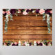 Um conselho de poster de 54 por 40 polegadas extra grande com um fundo de madeira de conselho de galpões rústicos recuperada. Uma tosse de flores cor-de-rosa e arroxeadas, em cascata, entre as terras verdes prateadas e buquês florais românticos iluminados por velas, que explodem com flores de pedras e pulverizações de arte floral. Este poster é vazio para que você possa digitar seu texto e usá-lo em qualquer ocasião.
