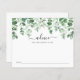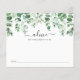 O cartão de atividade para chá de bebê apresenta eucalipto aquarela e folhagens. Os prompts do cartão de conselhos convidam os convidados a compartilhar conselhos para os pais ou para a futura mamãe.