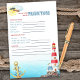 Previsões e folhas de conselhos do chá de bebê náutico. Atividade divertida para envolver os convidados no seu chá de bebê, com palavras de sabedoria para os futuros pais. O design apresenta um farol com gaivota de marinheiro e estrelas-do-mar nas rochas; uma âncora, o oceano e o sol usando um chapéu de capitão olhando através de um telescópio. "Previsões" é escrito em texto decorativo e o design tem uma história de cores geral de azul, vermelho e branco. Se você gostaria de produtos combinando, por favor, navegue pela minha coleção Ahoy it's a Boy ou me envie uma mensagem para adicionar os modelos de design que você precisa.