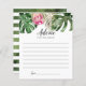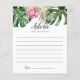 Cartões modernos de brida/chá de casamento, sobre temas tropicais, com ilustração aquosa das folhas de monstera verde, folha de palma e flor de proteína rosa-rei. Peça aos hóspedes para preencherem este cartão durante o chá. Será um bom excelente!