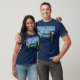 Conservar camiseta de consciência ambiental da água com chave inglesa e parafuso na design do lago azul.