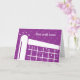 Consiga um bom cartão para jogadores de tênis. Um cartão de saudação roxo e bonito ilustrará o polo da tênis num dia chuvoso. Excelente para alguém com lesões no esporte ou em recuperação.
