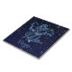 Azulejo com o símbolo do zodíaco de Virgo em azul-prata suave, sobreposto com as estrelas da constelação, contra um fundo do céu estrelado formando de azul-da-meia-noite a preto.