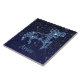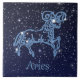 Telhe a caracterização do símbolo do zodíaco para o Aries no azul de prata macio, coberto com as estrelas da constelação, contra um fundo estrelado do céu formando do azul da meia-noite profundo para enegrecer.