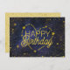 Cartão de aniversário personalizado com "Feliz Aniversário" em tipografia mista enquadrada com estrelas douradas, estrelas fotografadas e constelação cardíaca. Vários tamanhos disponíveis. Também disponível para download instantâneo para envio e compartilhamento.