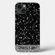 Grupos de estrelas formando padrões reconhecíveis de constelações em branco sobre fundo preto com bar branco transparente na base contendo uma linha de texto personalizada.