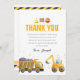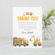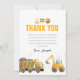 Obrigado os convidados do seu pequeno partido em estilo com este Cartões de agradecimentos de Aniversário da Construção! Apresentando ilustrações divertidas e coloridas de um escavador, caminhão de lixo, trator e muito mais, esta carta é perfeita para meninos que amam caminhões grandes e veículos de construção. O tema negro e amarelo-e-preto, inspirado em zonas reais de construção, acrescenta um toque excitante. Personalize a mensagem facilmente para torná-la mais especial para a celebração do aniversário do seu filho. Ideal para aniversários de criança ou jovem, com um tema de construção ou festa de caminhão.