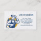 O ideal do cartão de visita para a empresa de solda dos contratantes e da solda do construtor dos trabalhadores que mostra a ilustração de um construtor do soldador que guardara o equipamento de soldadura que olha para tomar partido dos cilindros no fundo ajustou o círculo interno feito no estilo retro do woodcut.