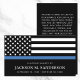 Este cartão de oração de fotos memorial do oficial da polícia, personalizável, honra a vida e o serviço de um oficial caído. A frente mostra o nome do policial, o nascimento e o fim das datas de observação, e a bandeira azul fina da polícia. O verso inclui uma oração personalizável. Este cartão serve como um lembrete duradouro da bravura e do sacrifício do oficial, proporcionando conforto à família, aos amigos e aos colegas.