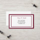 Este cartão de chamada é mostrado em um clássico design de bordado básico em branco com as bordas da Borgonha.