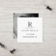 Foto de exemplo usada com obrigados de permissão para Jay Adams. Esta placa de chamada quadrada simples e na moda, simples, preta e branca, apresenta o seu monograma/inicial e, em seguida, o seu número de telefone e correio eletrônico. Carregar-os com você onde quer que você vá para distribuir quando/se necessário.