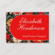 Faça uma impressão enorme com um cartão telefônico extra grande. A ilustração floral vibrante, dramática, vermelha e creme em um fundo escuro apresentado nesta placa chamadora 3.5x2.5 irá diferenciá-lo do resto, e adicionar suas informações importantes por meio de um código QR no verso manterá seu interesse.
