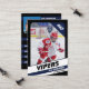 Pais de jogadores de hóquei no gelo de pequena liga podem orgulhosamente compartilhar as conquistas de seus filhos no campo com esses cartões de troca de preto e azul personalizáveis. Ambas as fotos, frente e verso, podem ser alteradas para mostrar sua própria pequena área, incluindo um novo número Jersey. Quase todo o texto no verso pode ser modificado, incluindo estatísticas de jogadores, bio, posição. Oferecendo muito para distribuir entre amigos e parentes, assim como para seu filho trocá-los com outros garotos que também possuem cartões de troca coletiva. Cria uma coleção de cartões de hóquei no gelo, fazer de presentes únicos.
