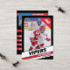 Pais de jogadores de hóquei no gelo de pequena liga podem orgulhosamente compartilhar as conquistas de seus filhos no campo com esses cartões de troca vermelhos e negros personalizáveis. Ambas as fotos, frente e verso, podem ser alteradas para mostrar sua própria pequena área, incluindo um novo número Jersey. Quase todo o texto no verso pode ser modificado, incluindo estatísticas de jogadores, bio, posição. Oferecendo muito para distribuir entre amigos e parentes, assim como para seu filho trocá-los com outros garotos que também possuem cartões de troca coletiva. Cria uma coleção de cartões de hóquei no gelo, fazer de presentes únicos.