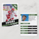 Pais de jovens jogadores de hóquei no gelo em pequenas ligas podem mostrar orgulhosamente as realizações de seus filhos no gelo usando esses cartões de troca verdes e brancos personalizáveis. As fotos da frente e do verso podem ser ajustadas para realçar seu jovem jogador, permitindo um novo Jersey Number. Quase todo o texto nas costas do cartão é editável, cobrindo estatísticas de jogador, bio e posição. Estes cartões são amplos para compartilhar entre amigos e familiares, e para o seu filho trocar com outros jovens que possuem seus próprios cartões de troca coletiva. Esta coleção forma um conjunto único de cartões de hóquei no gelo, perfeito para diferentes oportunidades de presentes.