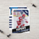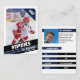 Pais de jovens jogadores de hóquei no gelo em pequenas ligas podem mostrar orgulhosamente as realizações de seus filhos no gelo usando esses cartões de troca personalizáveis, azuis e brancos. As fotos da frente e do verso podem ser ajustadas para realçar seu jovem jogador, permitindo um novo Jersey Number. Quase todo o texto nas costas do cartão é editável, cobrindo estatísticas de jogador, bio e posição. Estes cartões são amplos para compartilhar entre amigos e familiares, e para o seu filho trocar com outros jovens que possuem seus próprios cartões de troca coletiva. Esta coleção forma um conjunto único de cartões de hóquei no gelo, perfeito para diferentes oportunidades de presentes.