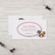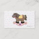 A na moda todler's play da garota chamando cartão, feito em um padrão de bolinhas rosa e branco. Uma área de texto oval branco, no meio, é decorada com um doce cavalo de balanço. Personalize o texto para si mesmo, como uma mamãe ou para o seu filho. Excelente modo de manter contato com outras mães e organizar datas de brincadeira, festas de aniversário e cooperativas de bebês.