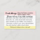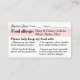 Contato Cartão de Jantar Alérgico, Restaurante Amigável Ce