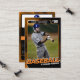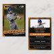 Crie um cartão de comércio personalizado de baseball para celebrar seu jogador favorito. Este modelo personalizável permite adicionar o nome, a equipe, as estatísticas e a foto do jogador. O design Laranja e preto é na moda e profissional, e perfeito para mostrar as conquistas de um jogador.