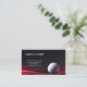 Este cartão de visita empresarial é mostrado em uma impressão de fundo relacionada ao golfe.
